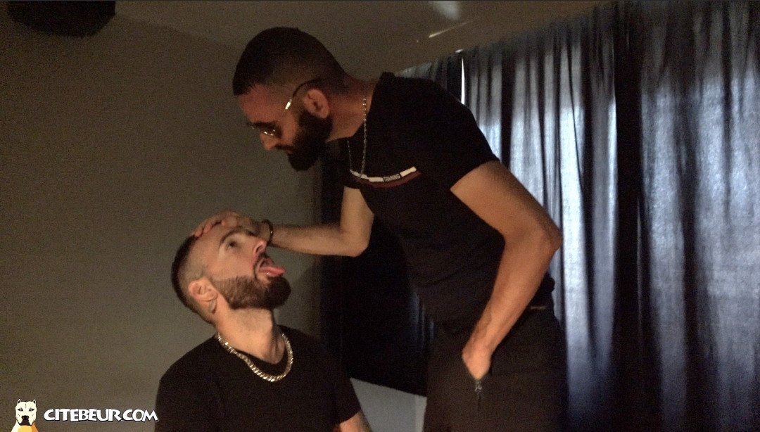 Il doit se mettre à genoux pour honorer le gros zob du rebeu. Ce dernier lui inflige même des coups de bifle. Ensuite, c’est une gorge profonde qu’il doit lui faire : le gland énorme du zob vient lui taper contre le fond de gorge . Littéralement, Kader baise la bouche de Tristan . Le macho prend même plaisir à lustrer le gros calibre. Mais ce n’est pas finit pour les deux barbus, en effet, après cette session de suce, Tristan devra se montrer encore plus obéissant.