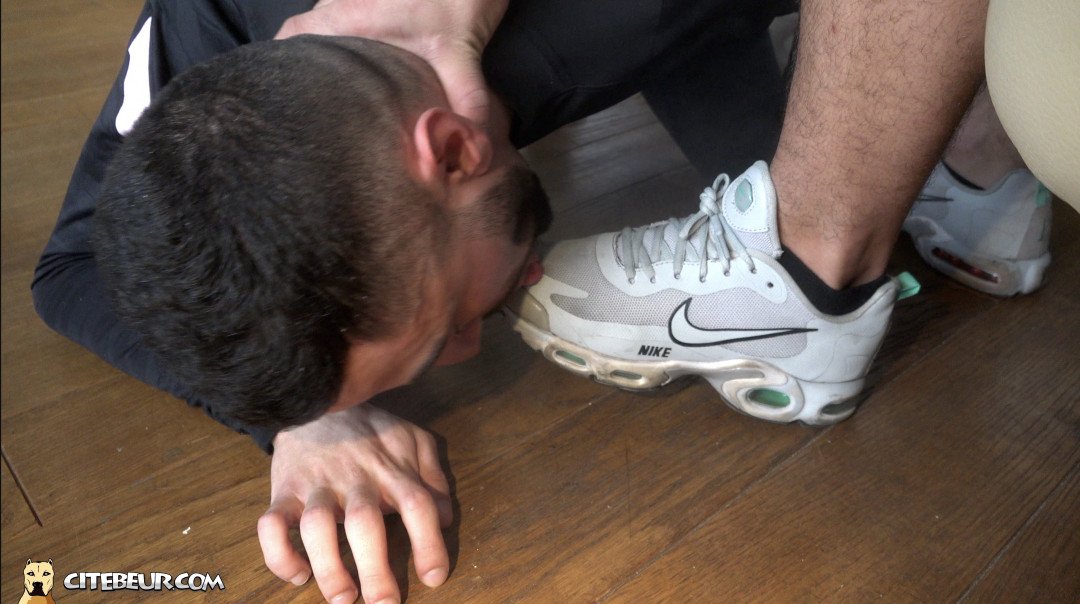 C’est justement par de la domination qu’il va mettre Medhi au pli. Même pas encore déshabillé que déjà Malik lui fait sniffer ses skets Nike. Ensuite, pieds nus, il lui faire renifler ses pieds odorants. Et il pousse le vice à les lui faire lécher.
