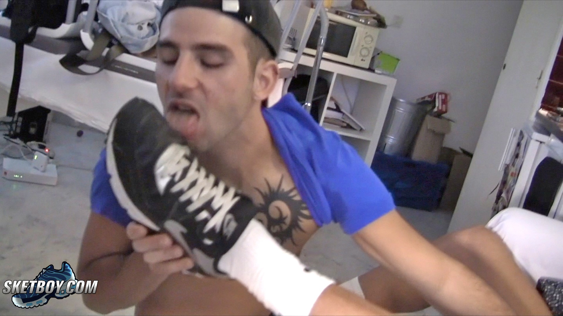 Le passif ne tardera pas a jour sur ses skets avant de se faire arroser le cul par la semence abandonnée du macho alpha.